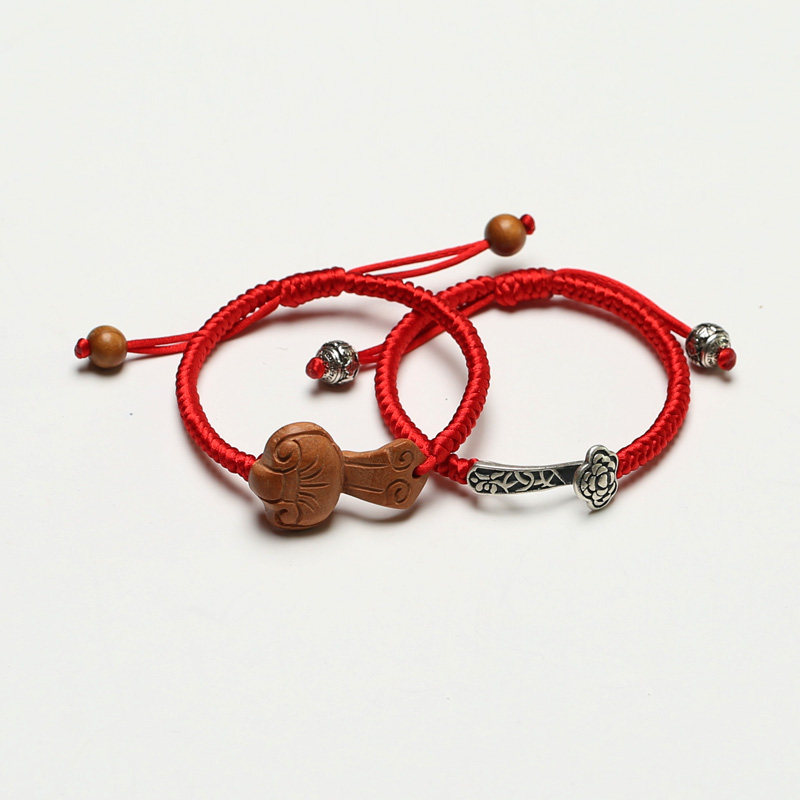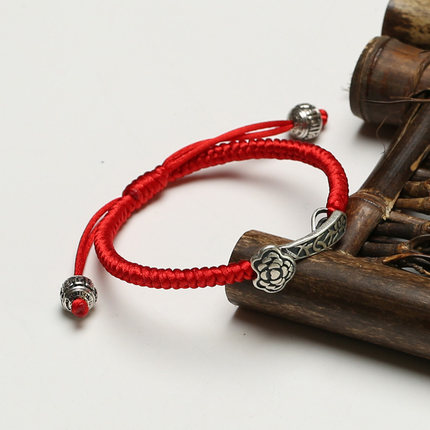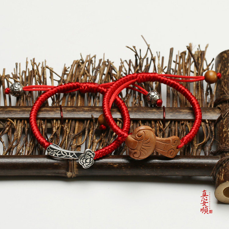 真安顺纯银如意手链红绳金刚结护佑手链925银饰本命年情侣宝宝款