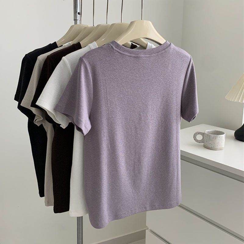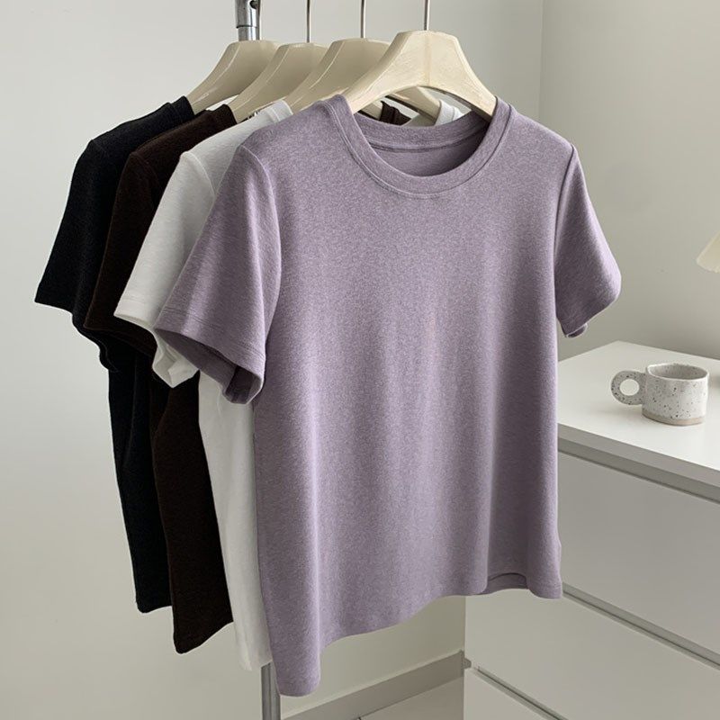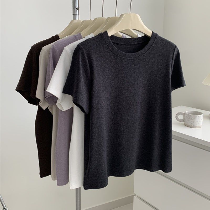 简约韩版内搭25春夏小个子垂感软糯竹节棉纯色T恤女显瘦正肩短袖