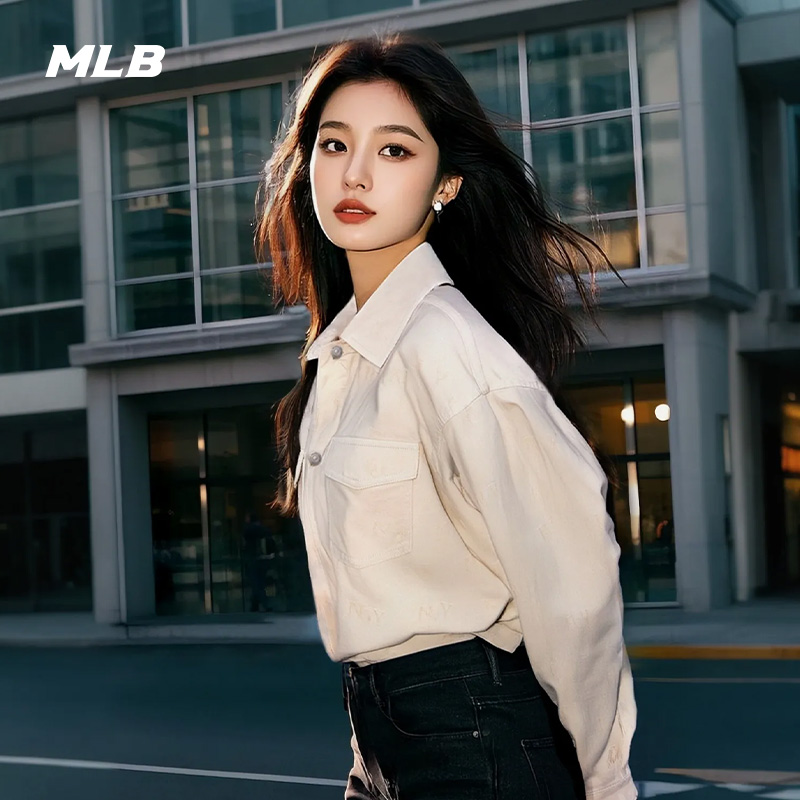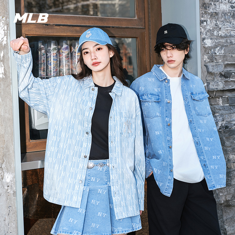 MLB官方 男女情侣满印老花复古时尚牛仔衬衫外套25春夏新款DRM01