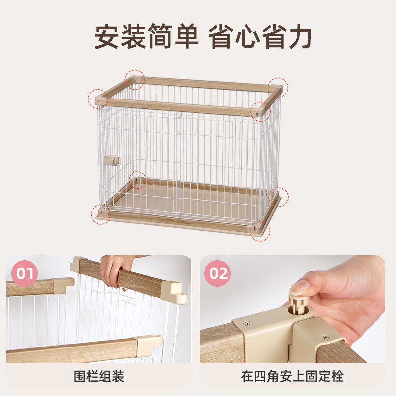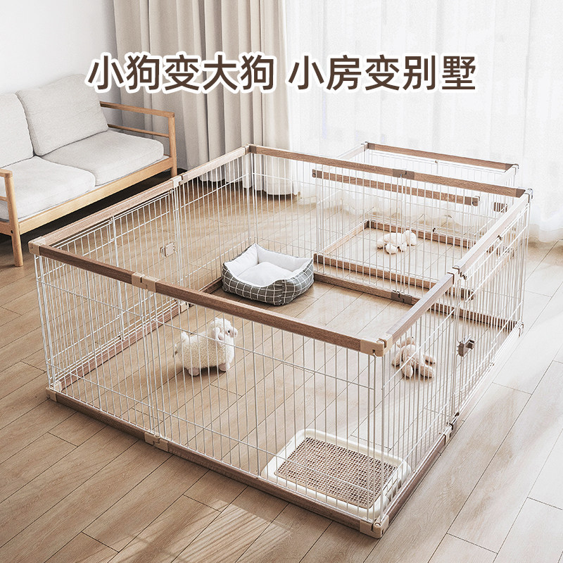 爱丽思大型加高狗笼围栏中小型狗笼围栏室内原木风狗窝狗屋狗房子