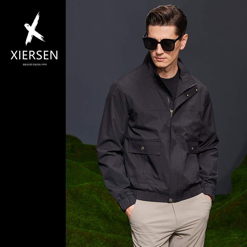 欧洲站轻奢春秋新款立领夹克男商务休闲外套时尚百搭上衣猎装修身