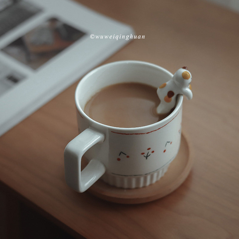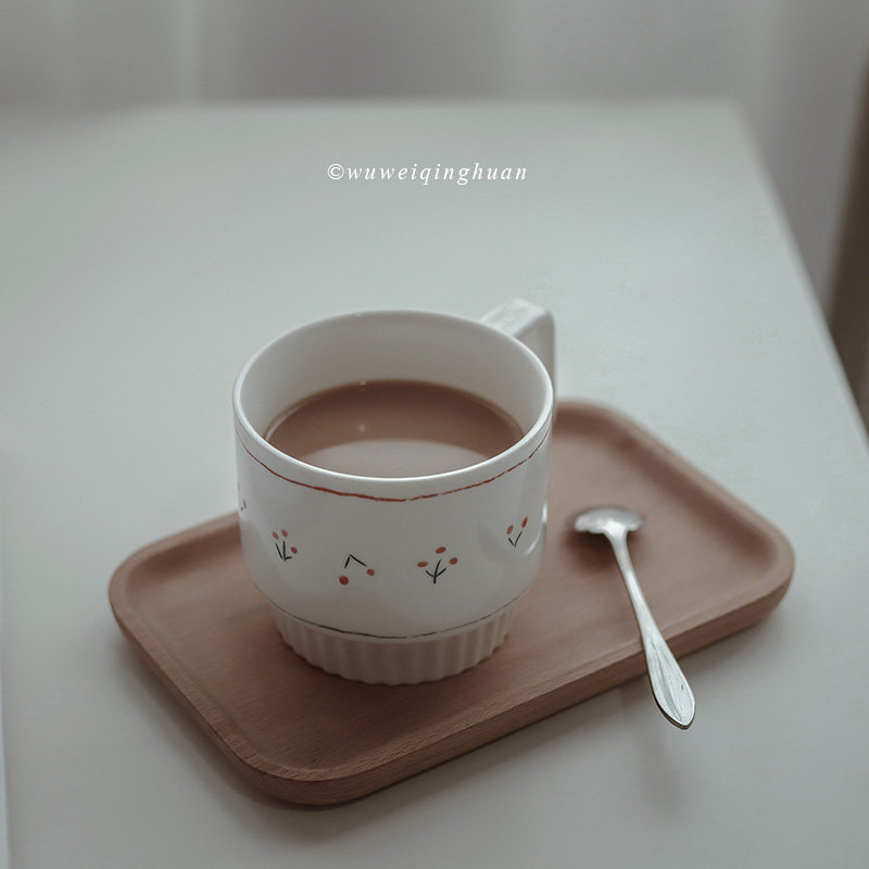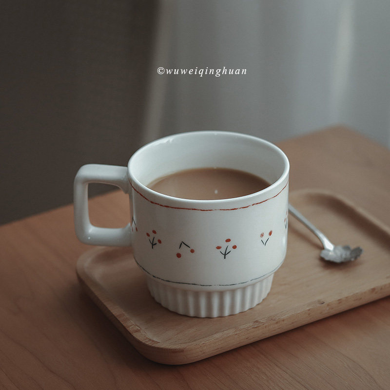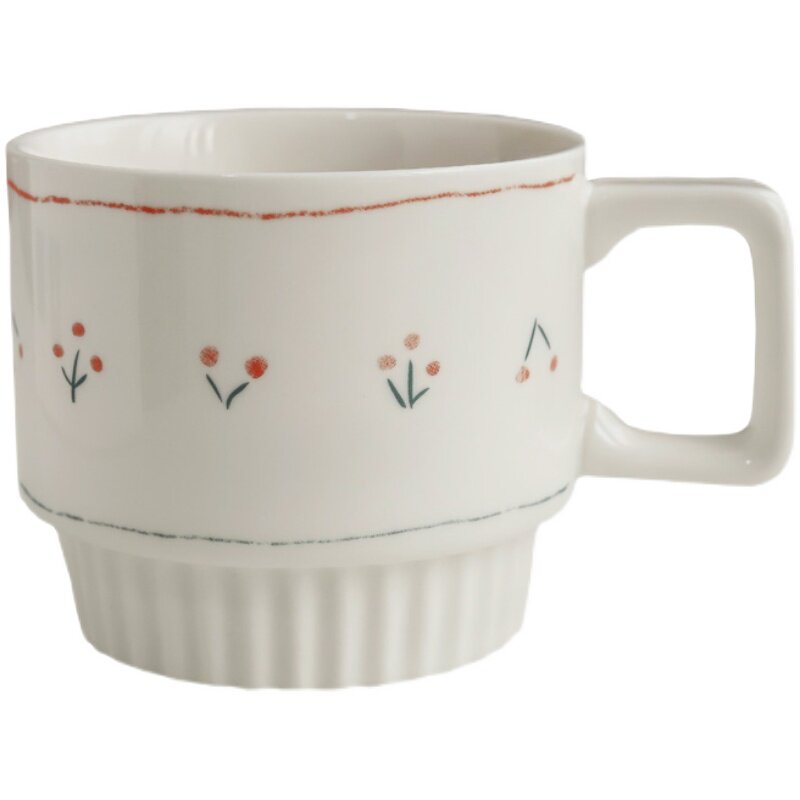 手绘樱桃马克杯 ins风复古法式手握陶瓷咖啡杯小众早餐牛奶杯水杯
