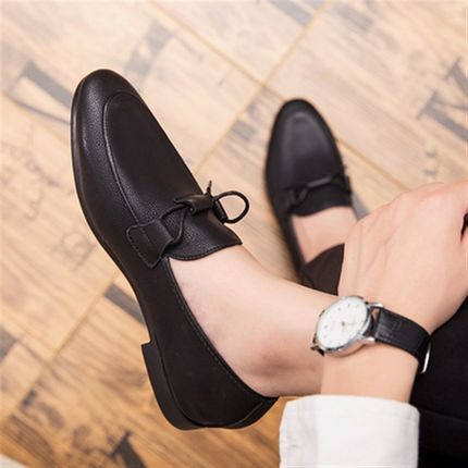 英伦潮流软皮男士休闲小皮鞋青年尖头一脚蹬懒人鞋韩版发型师夜场