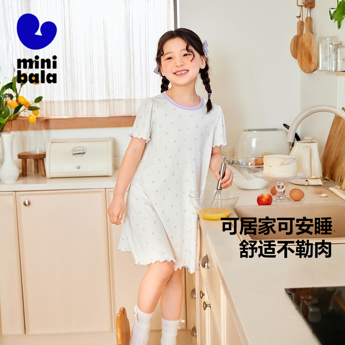迷你巴拉巴拉女童睡裙宝宝家居裙2025夏季新款儿童透气舒适睡衣裙