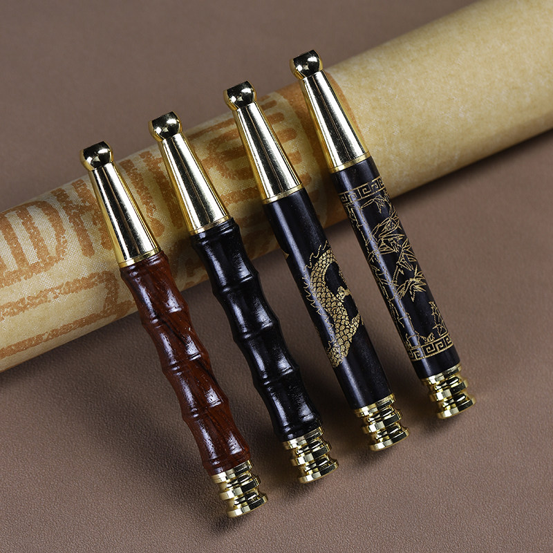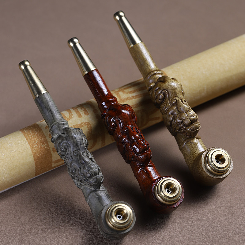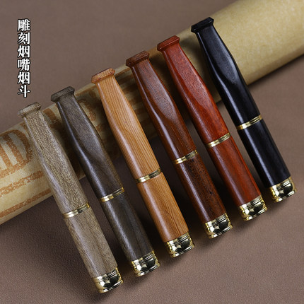 小叶紫檀红酸枝崖柏双重过滤烟杆红木烟嘴实木原木可清洗粗细双用