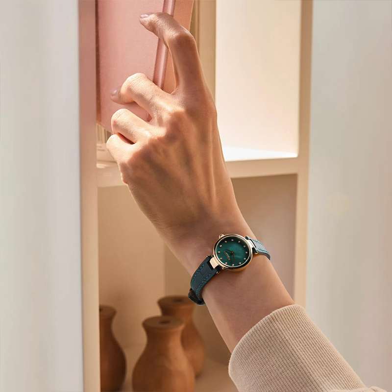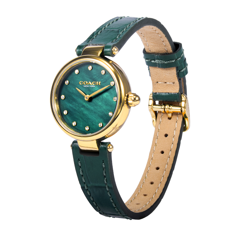 COACH蔻驰女士手表PARK贝母表盘复古皮带小绿表送女生礼物