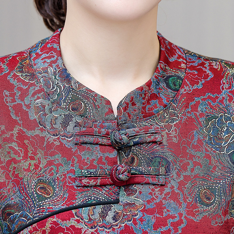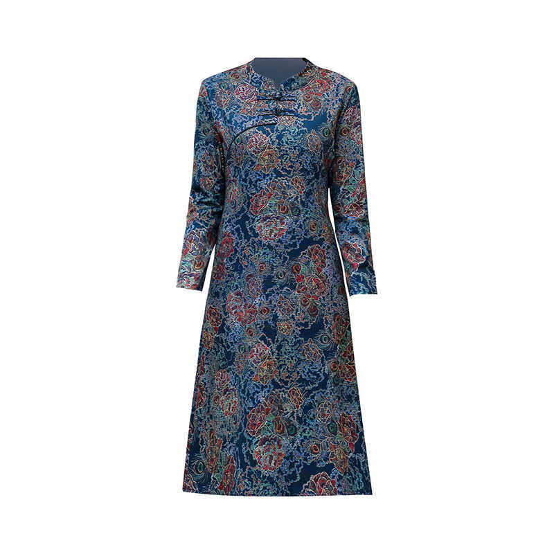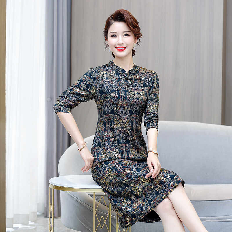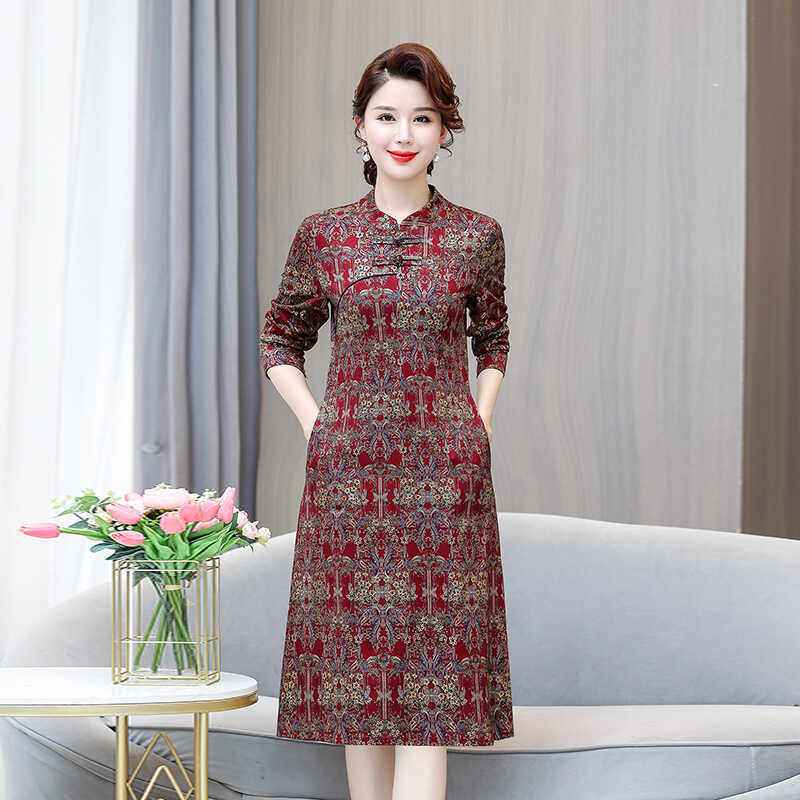 妈妈装2024秋季民族风复古改良旗袍连衣裙中老年女式显瘦长袖裙子