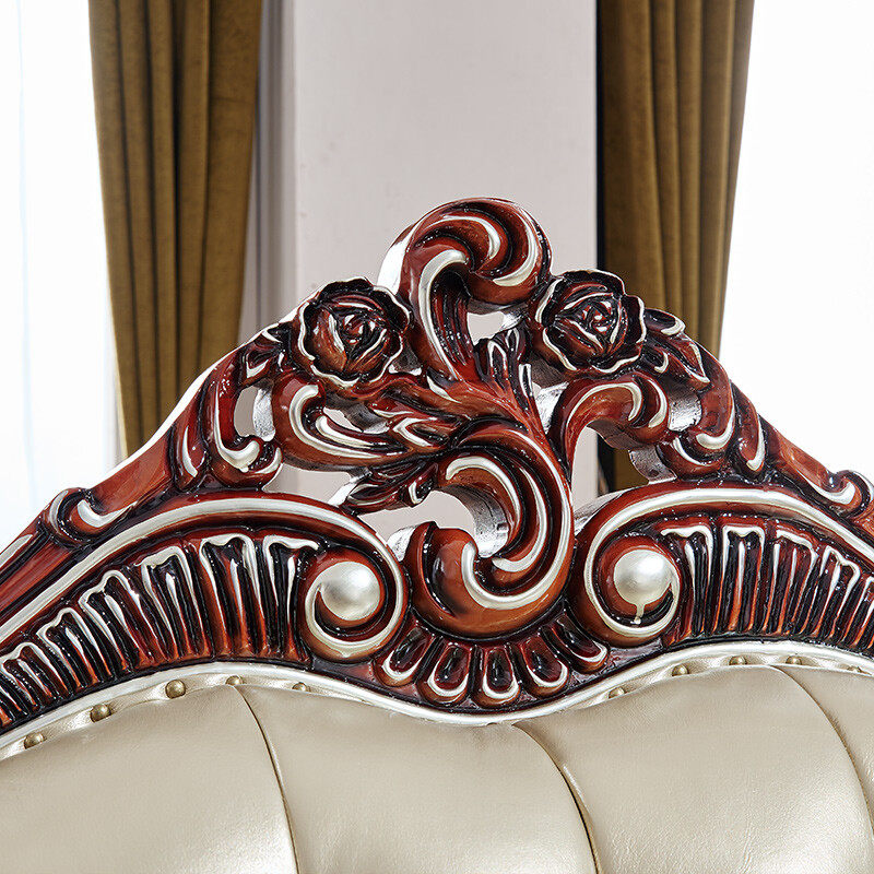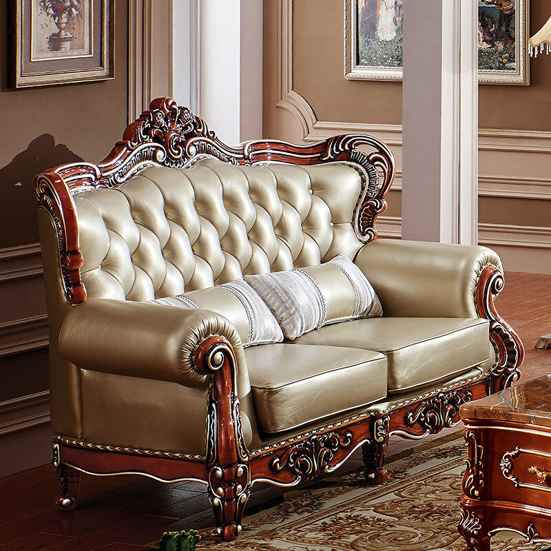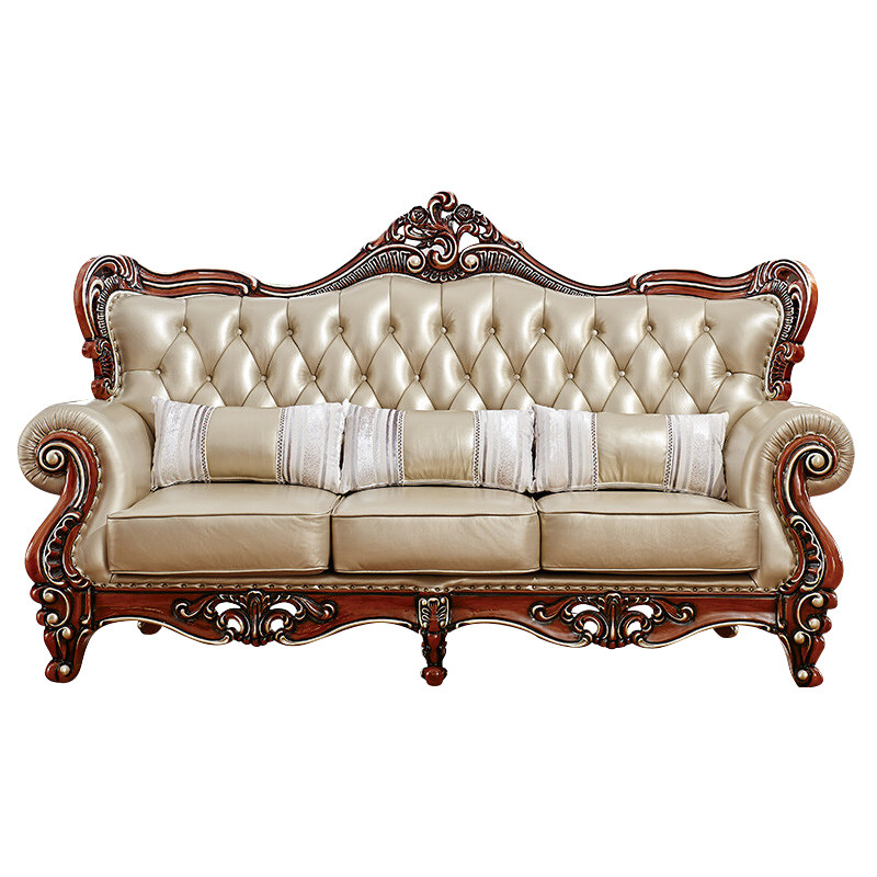 欧式高档沙发 美式复古实木橡木雕花皮艺沙发组合别墅客厅123沙发