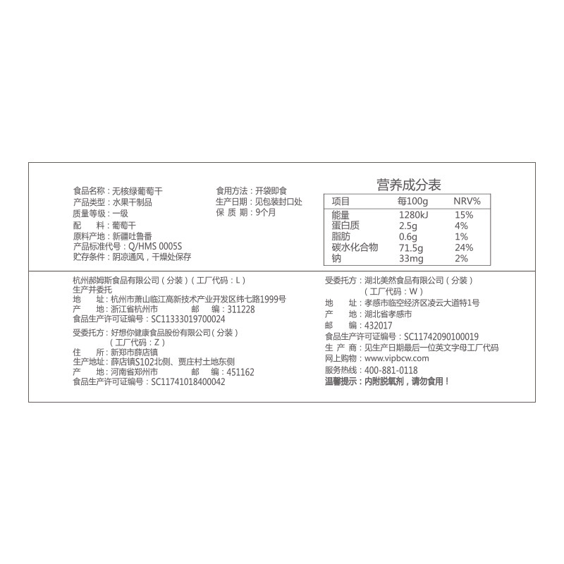 百草味无核绿葡萄干100g