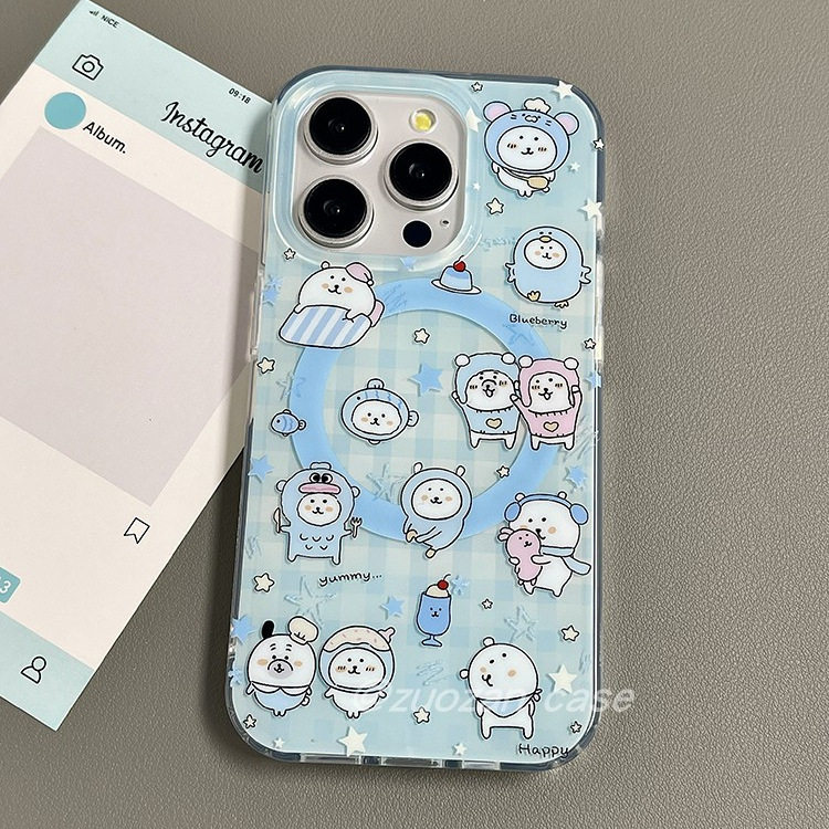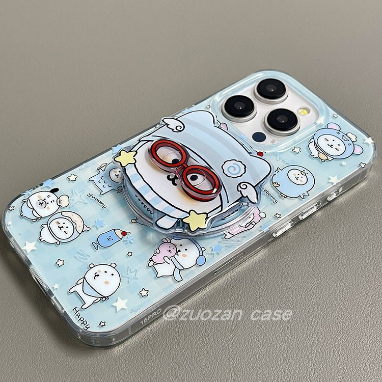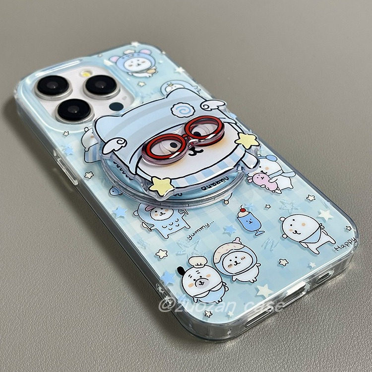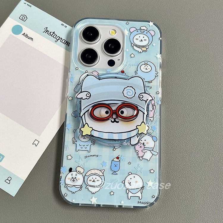 磁吸可爱卡通蓝色带眼镜自嘲熊支架适用苹果16promax手机壳iphone15pro新款14双层13女16pro全包防摔手机套17
