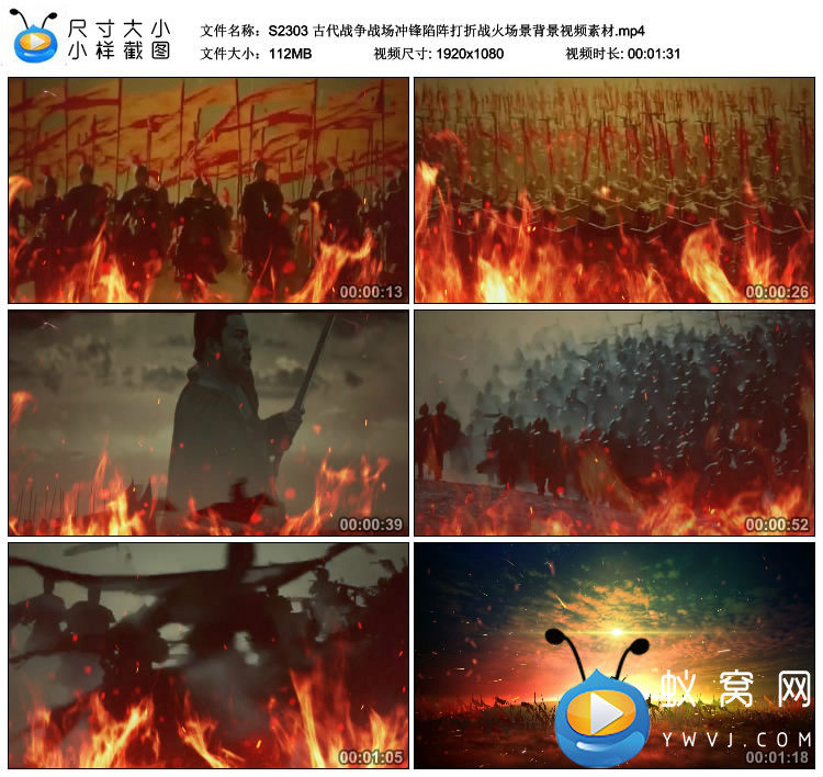 S2303 古代战争战场冲锋陷阵打折战火场景背景视频素材