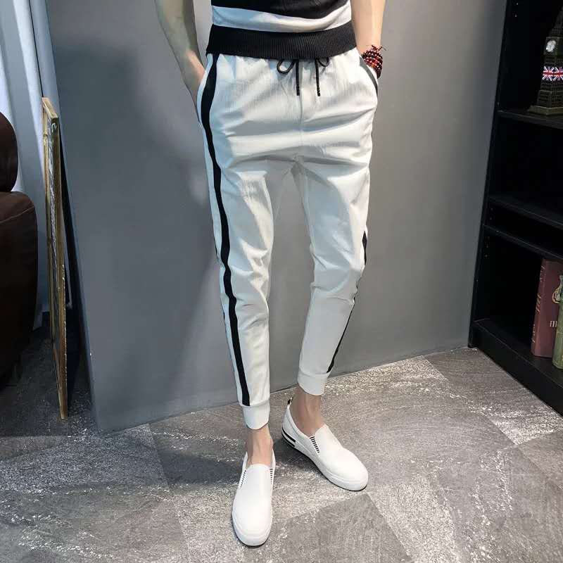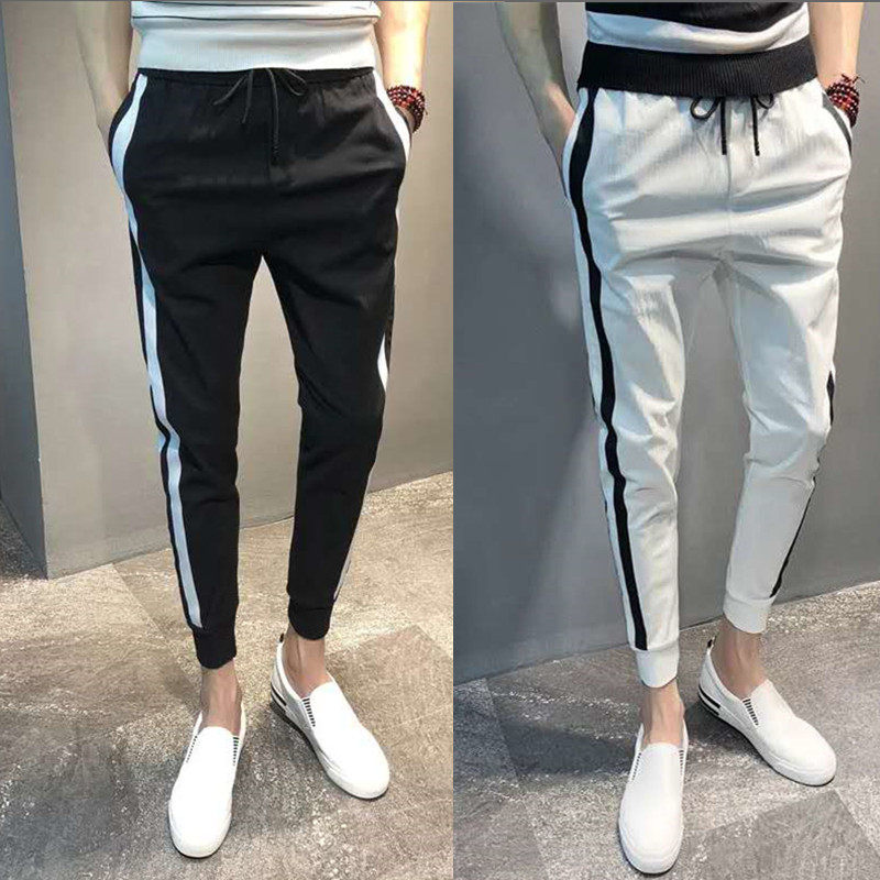 裤子男韩版潮流夏季九分裤精神小伙潮牌百搭弹力男士休闲小脚裤男