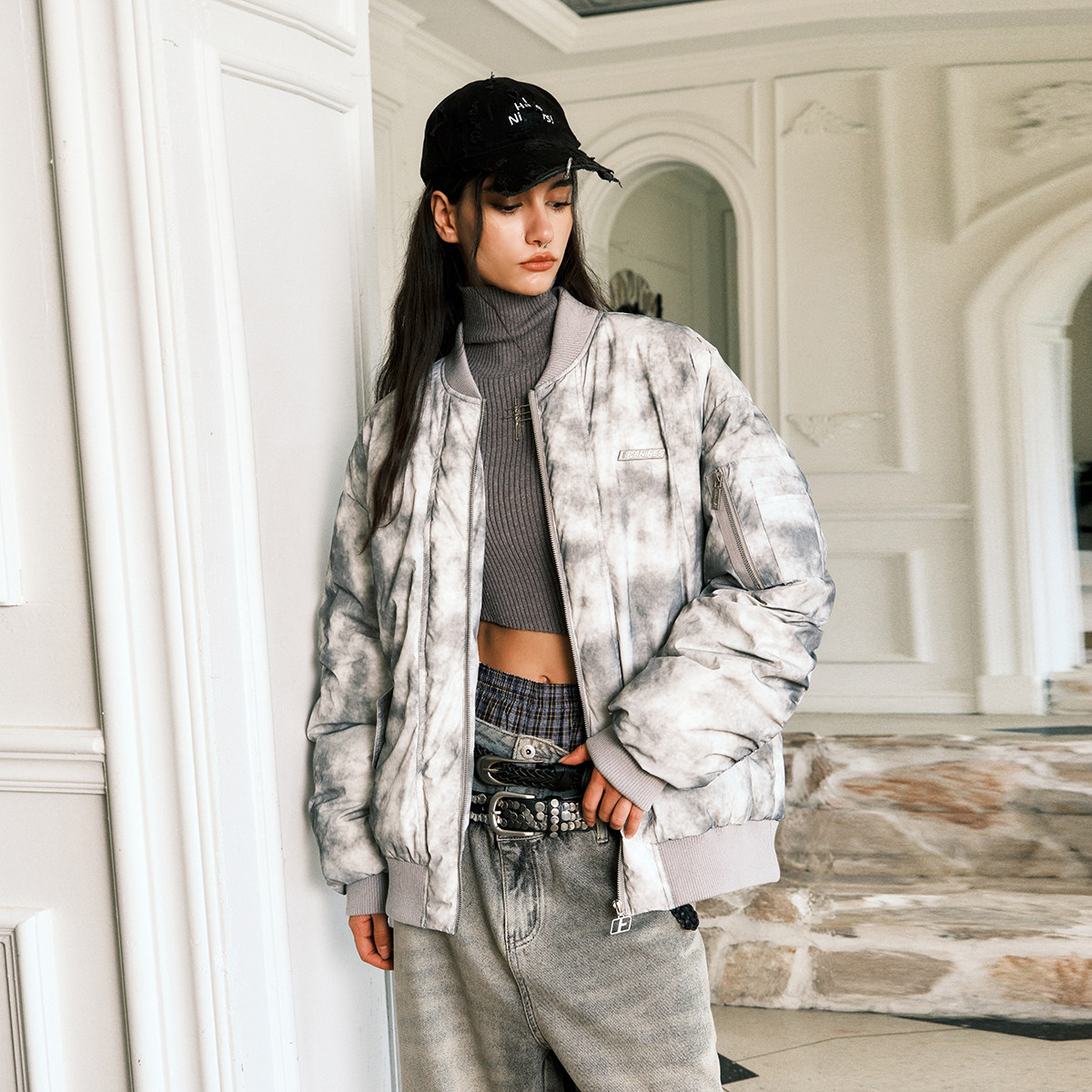 FORNINES迷彩飞行员夹克棉衣男女棒球服潮牌袄子防寒冬季美式外套