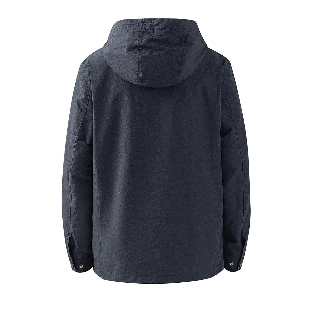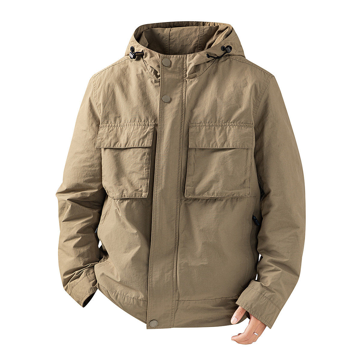 罗蒙男士连帽夹克外套春秋新款户外工装拉链多口袋风衣短款冲锋衣