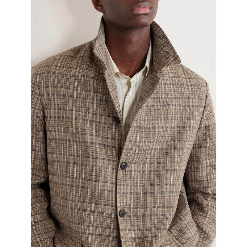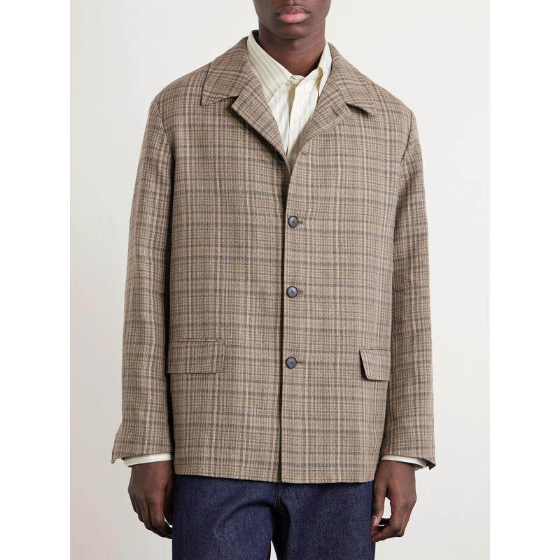 AURALEE 男士 SS26 夹克 格纹真丝亚麻混纺花呢