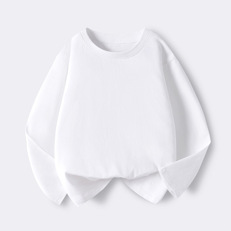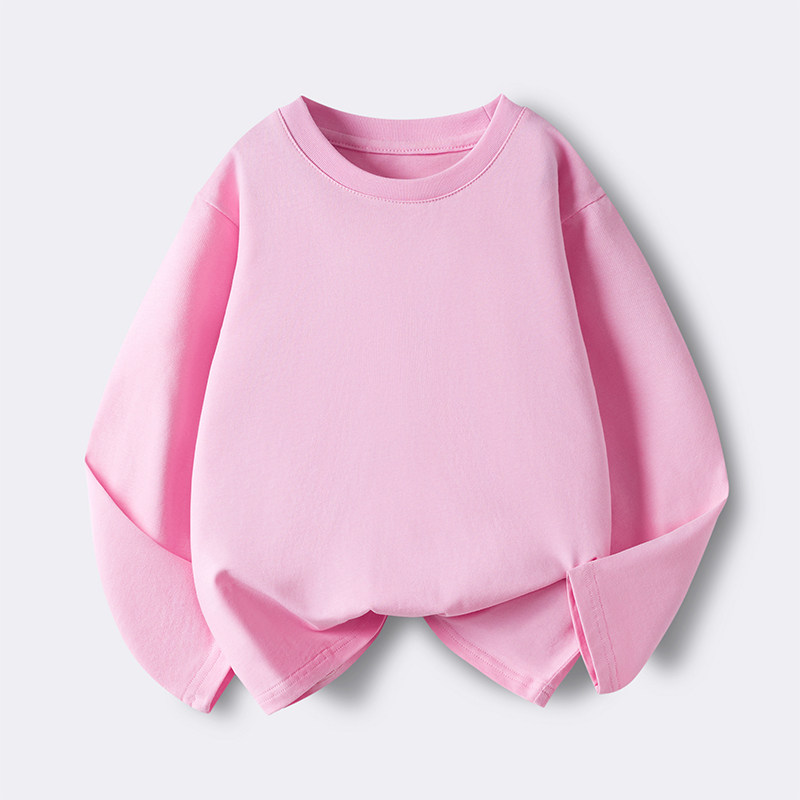 儿童纯色长袖T恤纯棉中大男童女童春秋款上衣宽松简约百搭打底衫