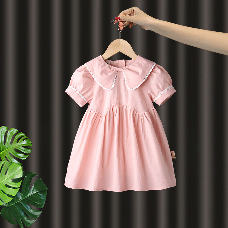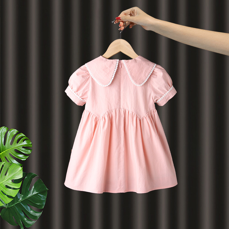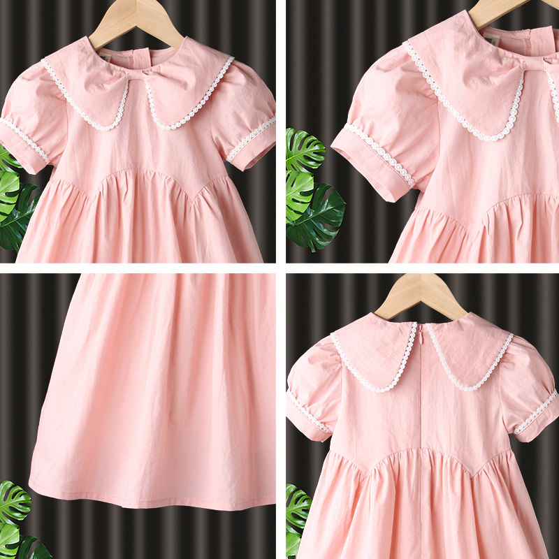 娃娃领纯棉粉色公主裙女童连衣裙
