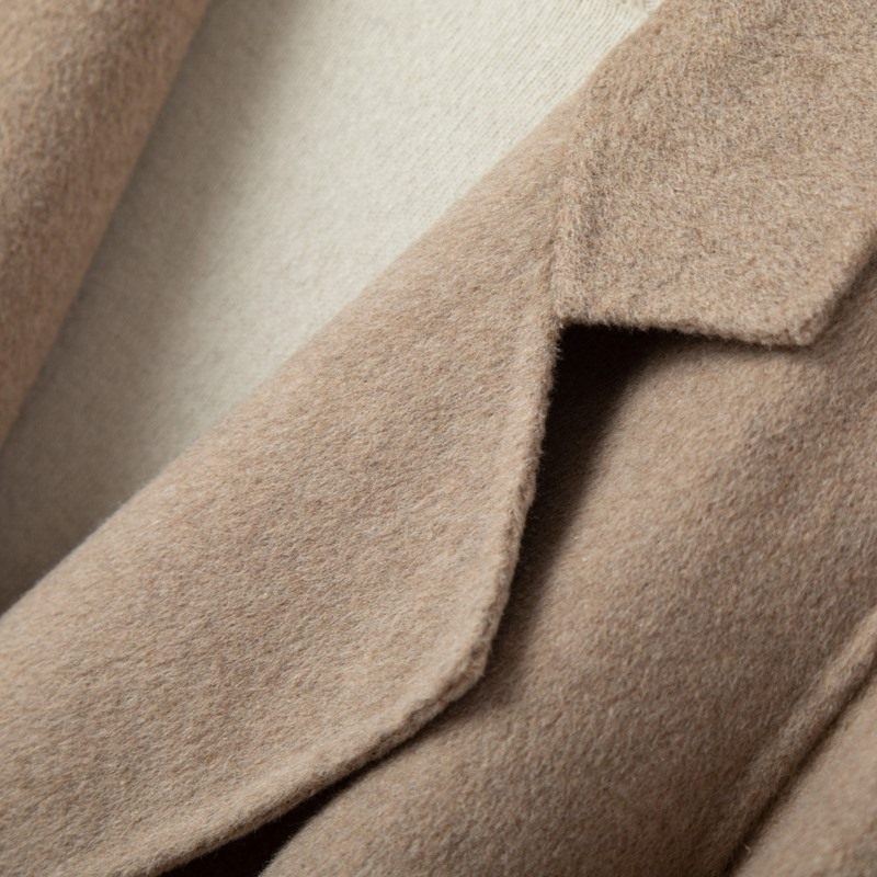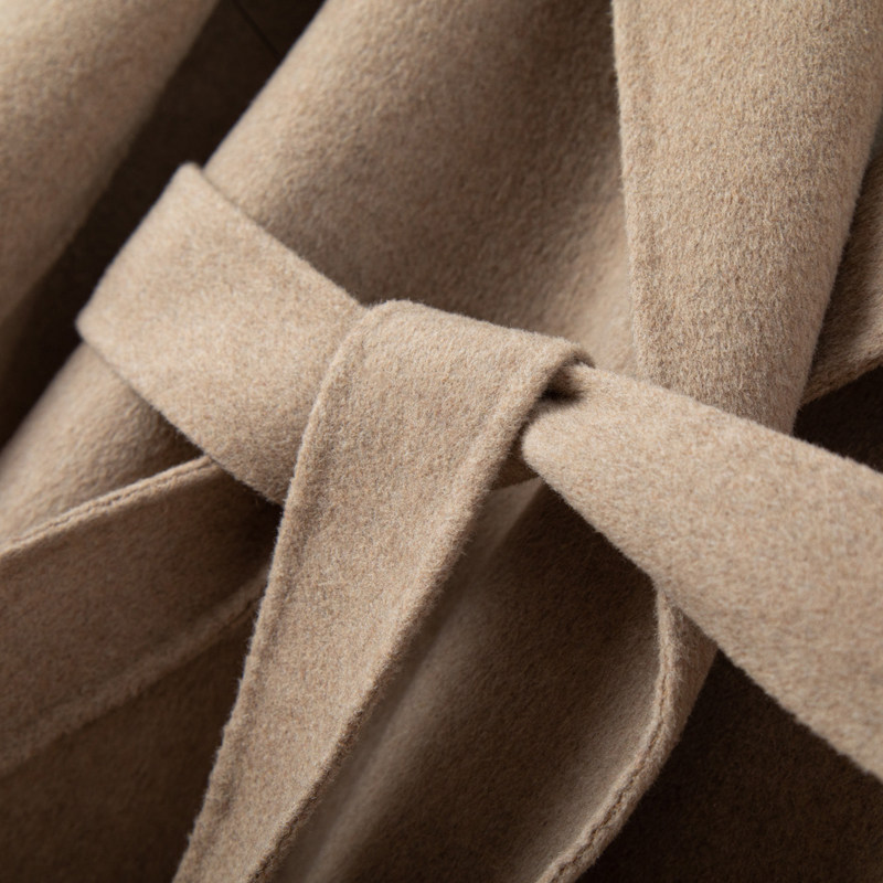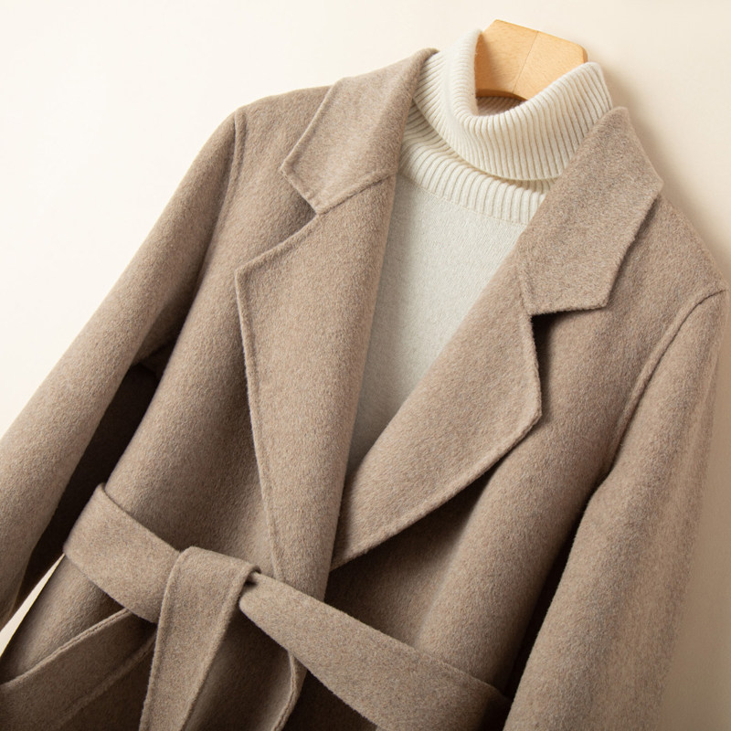 反季秋冬高端双面羊绒大衣女小个子羊毛呢外套系带双面呢西装领潮