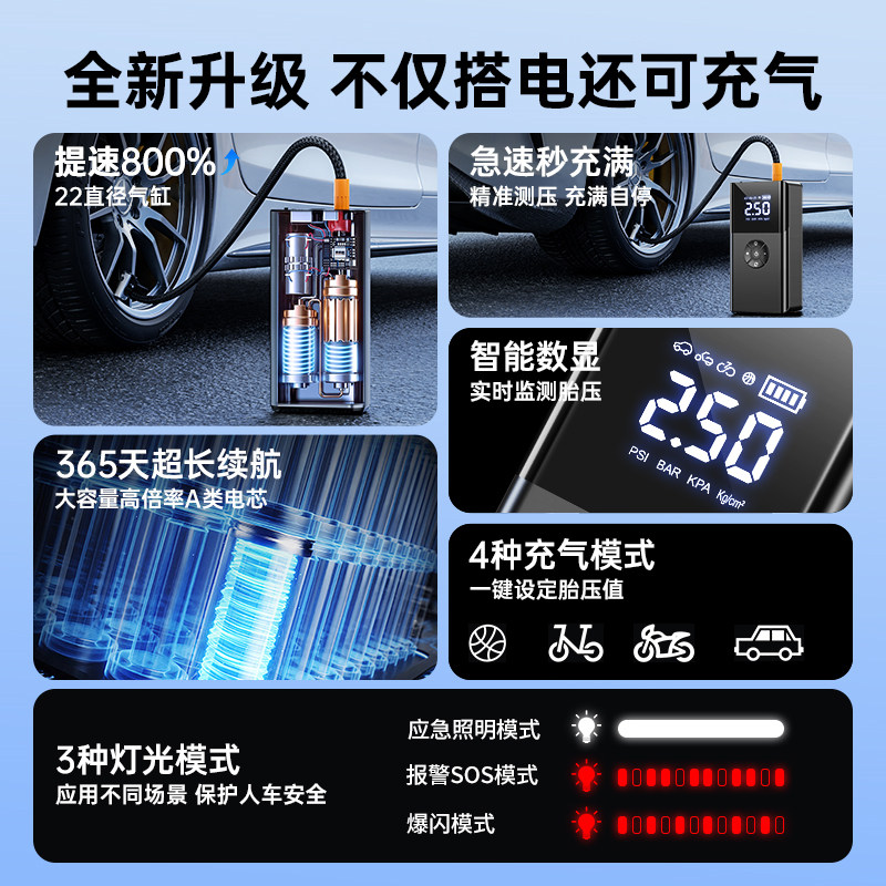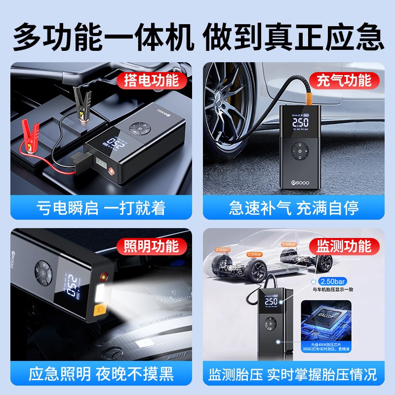 汽车应急启动电源充气泵一体机电瓶搭火神器强起紧急搭电宝车载用