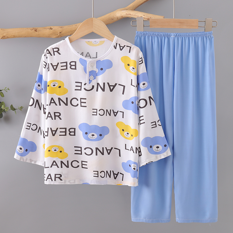 夏季儿童睡衣男童薄款长袖绵绸