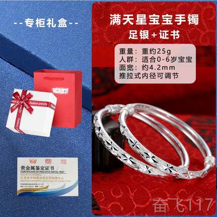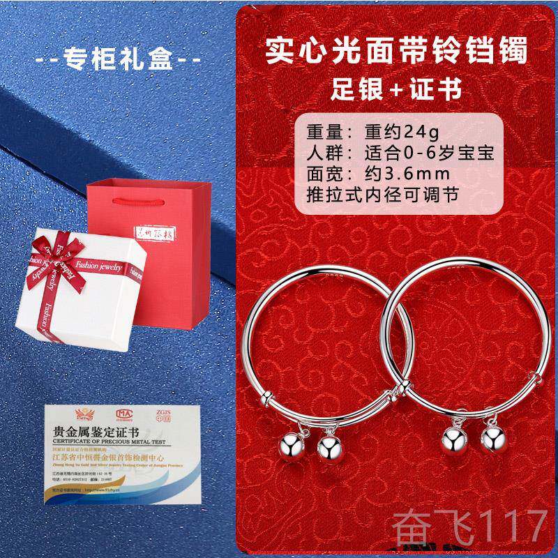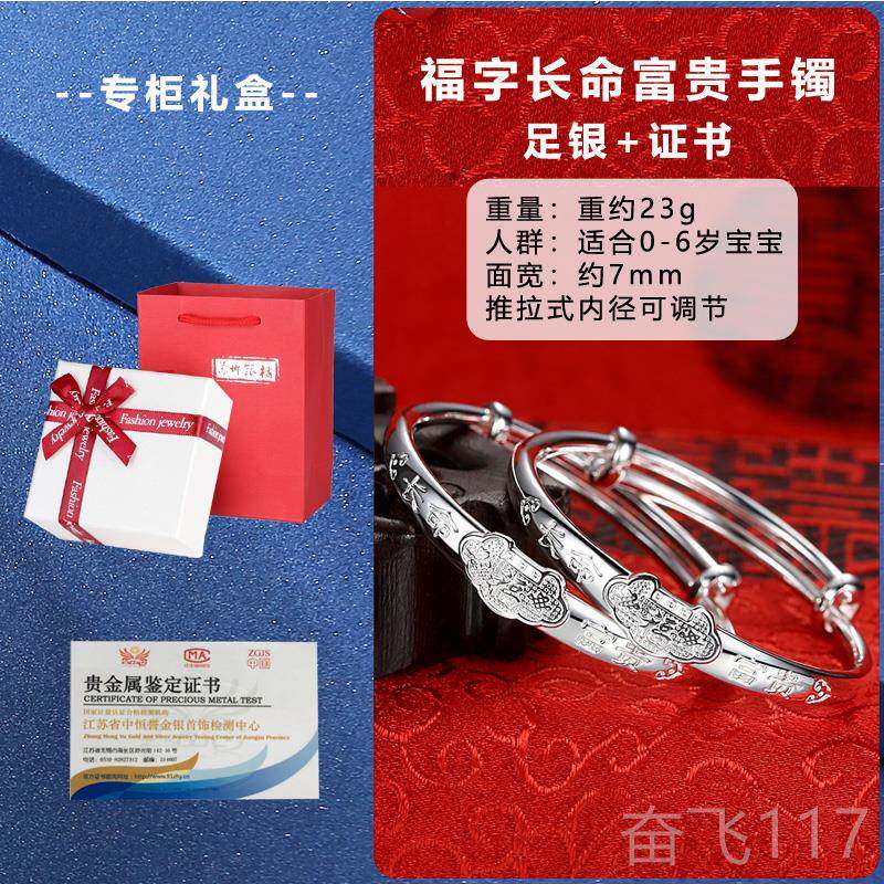 正品金龙宝宝银镯999纯银婴儿男女年孩儿童新银饰 生儿手满月礼手