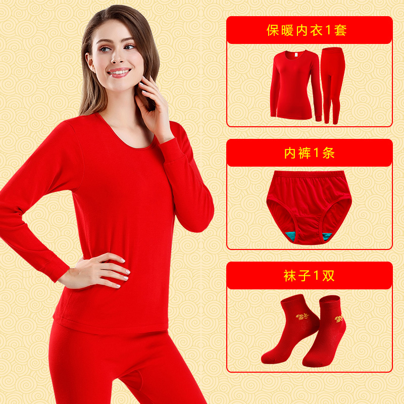 男女大红本命年内裤袜子组合