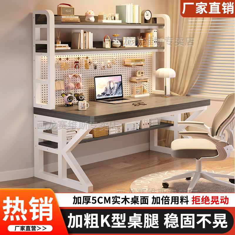 实木书桌台式书架一体卧室家用学生组合洞洞写字电脑桌办公桌