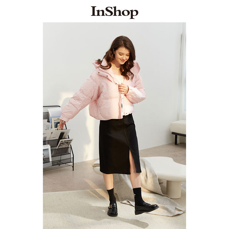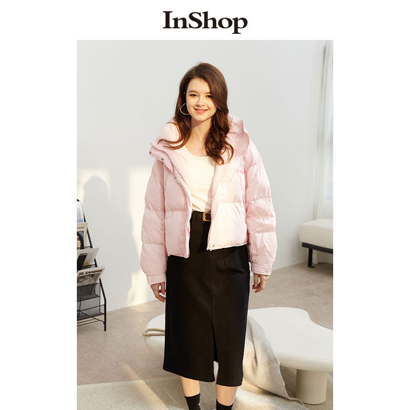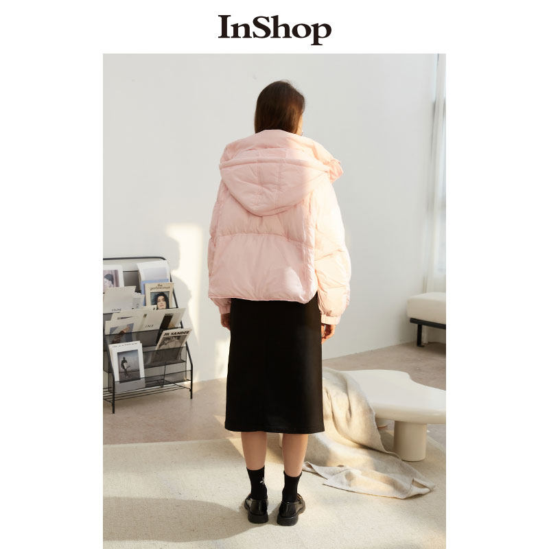 【商场同款】INSHOP新款连帽短款羽绒服女多巴胺色彩宽松面包服