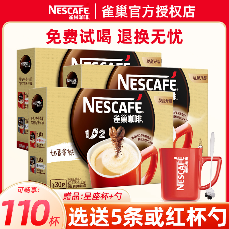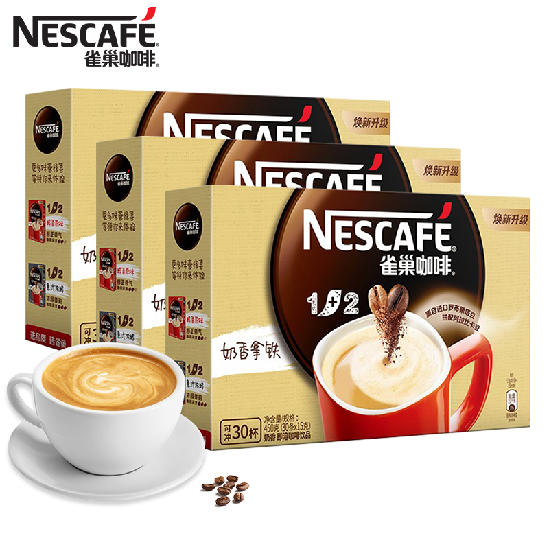 雀巢咖啡奶香100条装速溶三合一拿铁咖啡粉学生提神官方旗舰正品