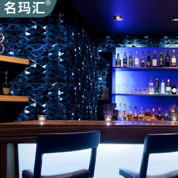 名玛汇蓝色镜面金属马赛克瓷砖背景墙大块3D立体酒吧不锈钢墙砖