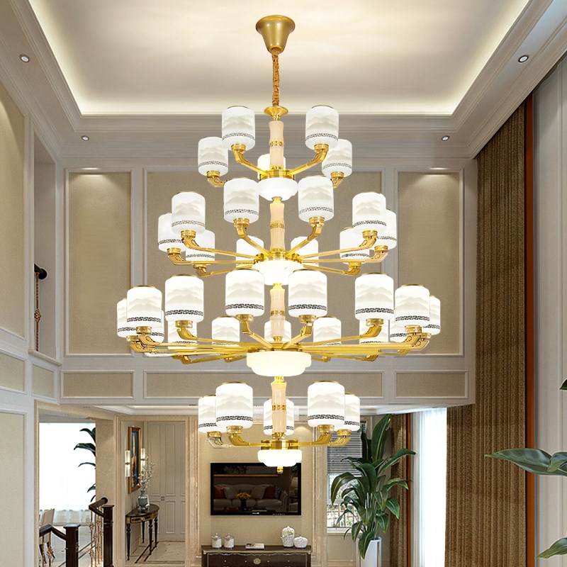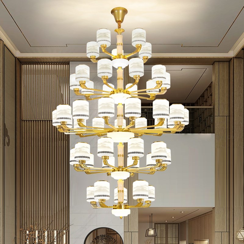 全铜新中式复式楼k客厅大吊灯别墅楼中楼梯长灯跃层大堂2023年新