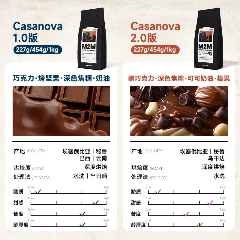 M2M Casanova拼配传统意式浓缩深度烘焙精品咖啡豆粉美式商用454g