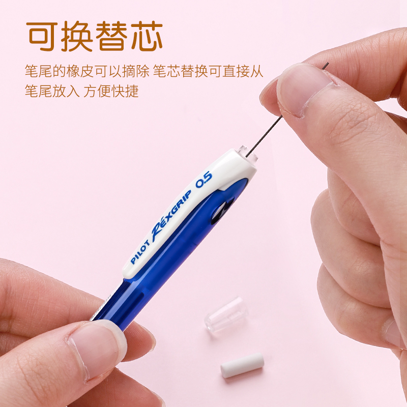 日本Pilot百乐自动铅笔0.5mm彩色透明杆小清新活动铅笔小学生写字手绘用不易断铅芯笔尾带橡皮擦HRG-10R