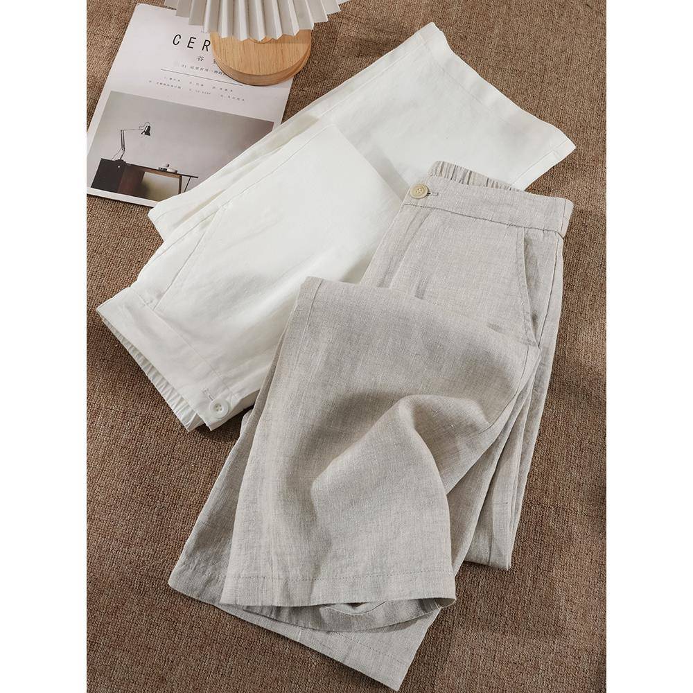 纯亚麻宽松阔腿女裤2025新款薄麻料垂感高腰九分显瘦休闲直筒长裤