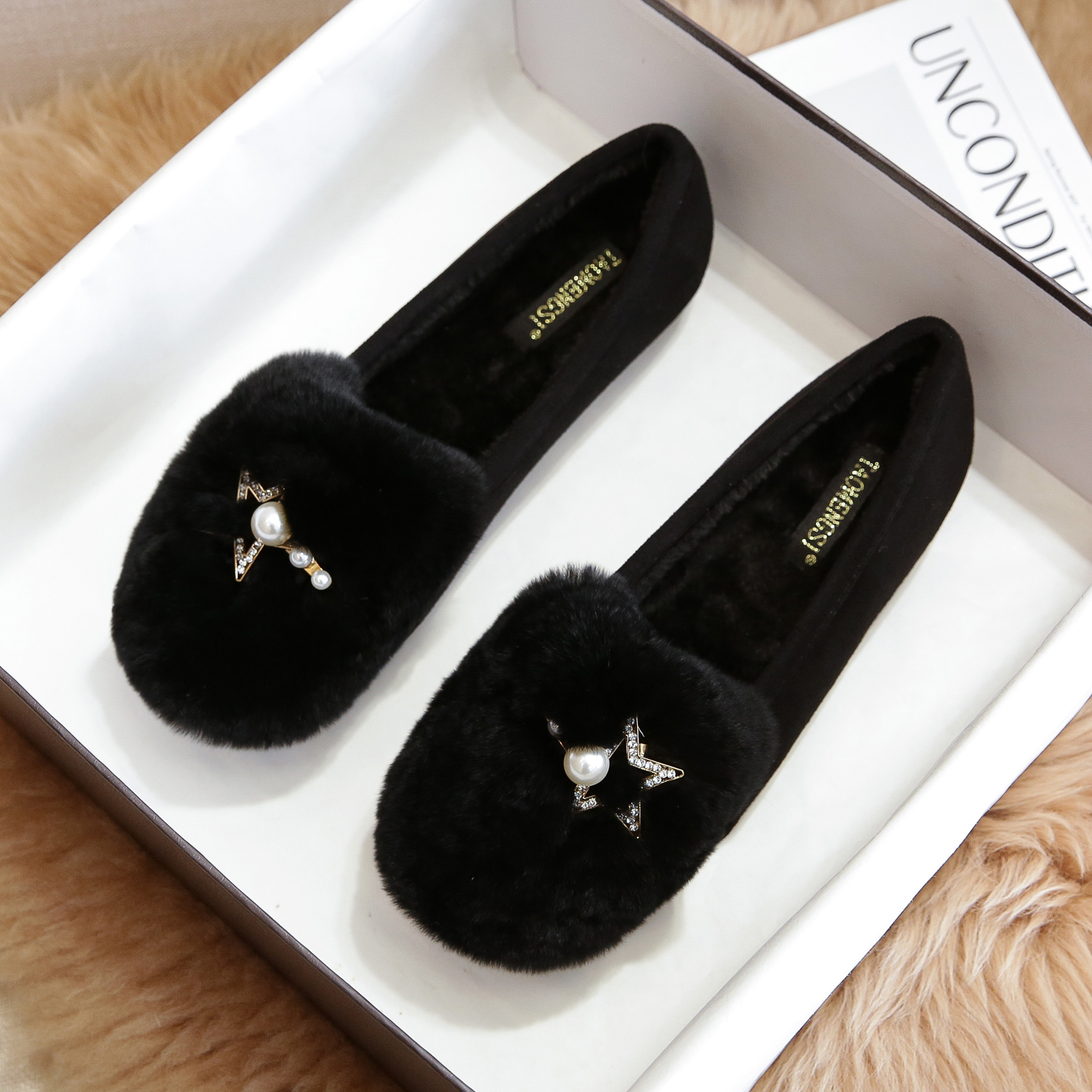 毛毛鞋女冬外穿厚底2025新款豆豆鞋女加绒兔毛棉鞋大码女鞋41到43