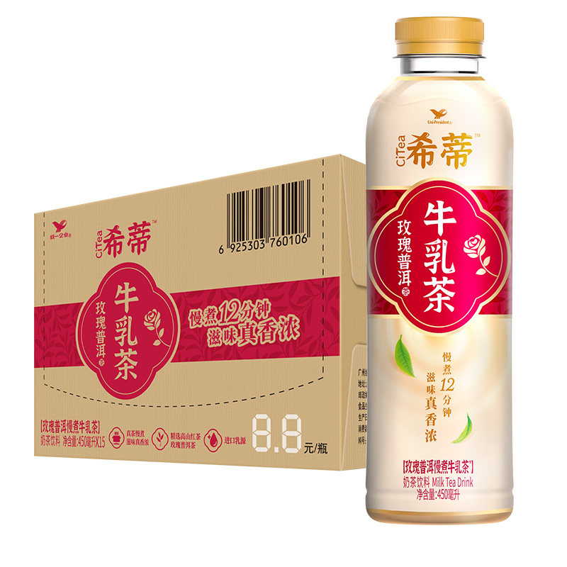 统一希蒂大红袍牛乳茶玫瑰普洱牛乳茶450ml*15瓶官方旗舰店整箱装
