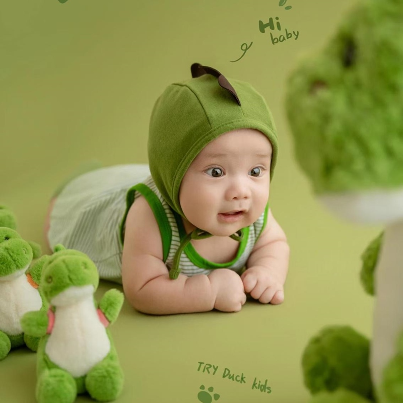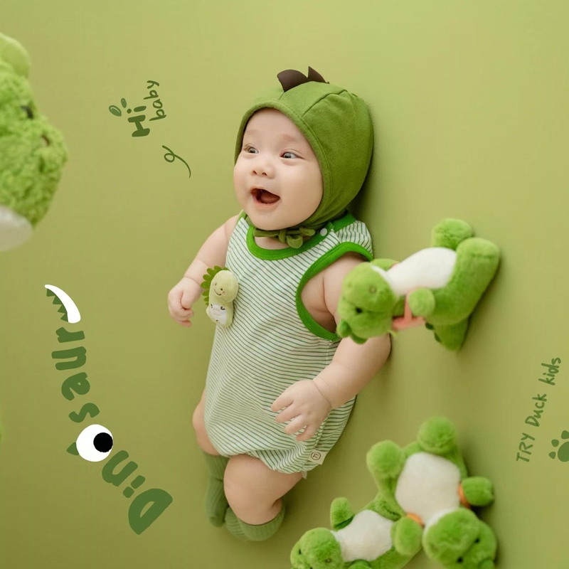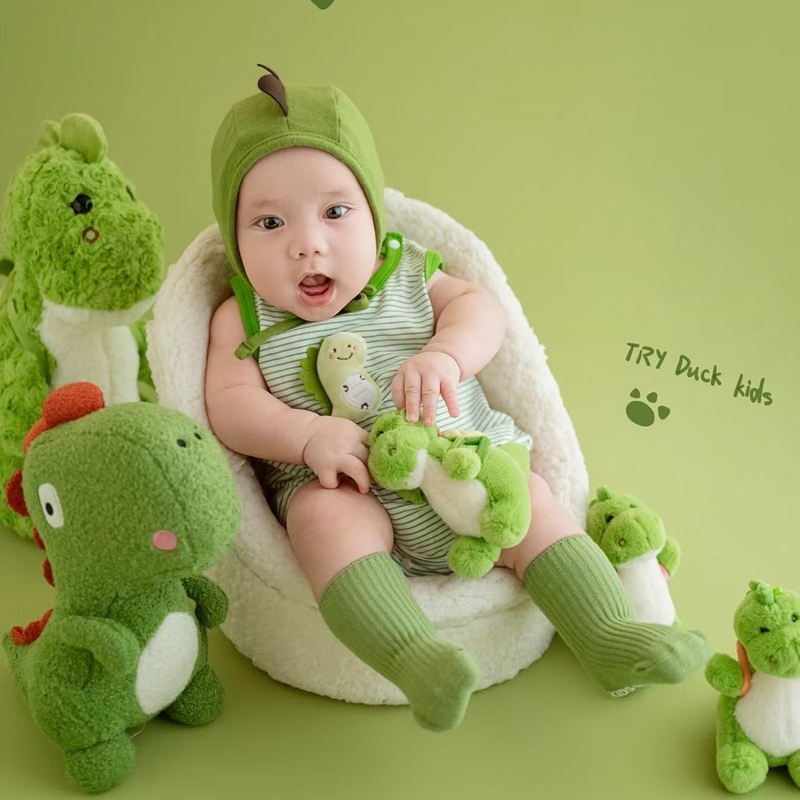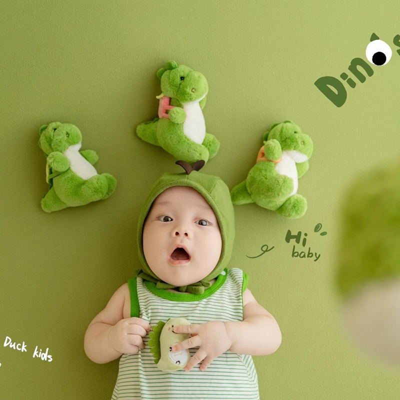 儿童摄影主题服装绿格恐龙造型宝宝百天照周岁照艺术照写真拍照衣