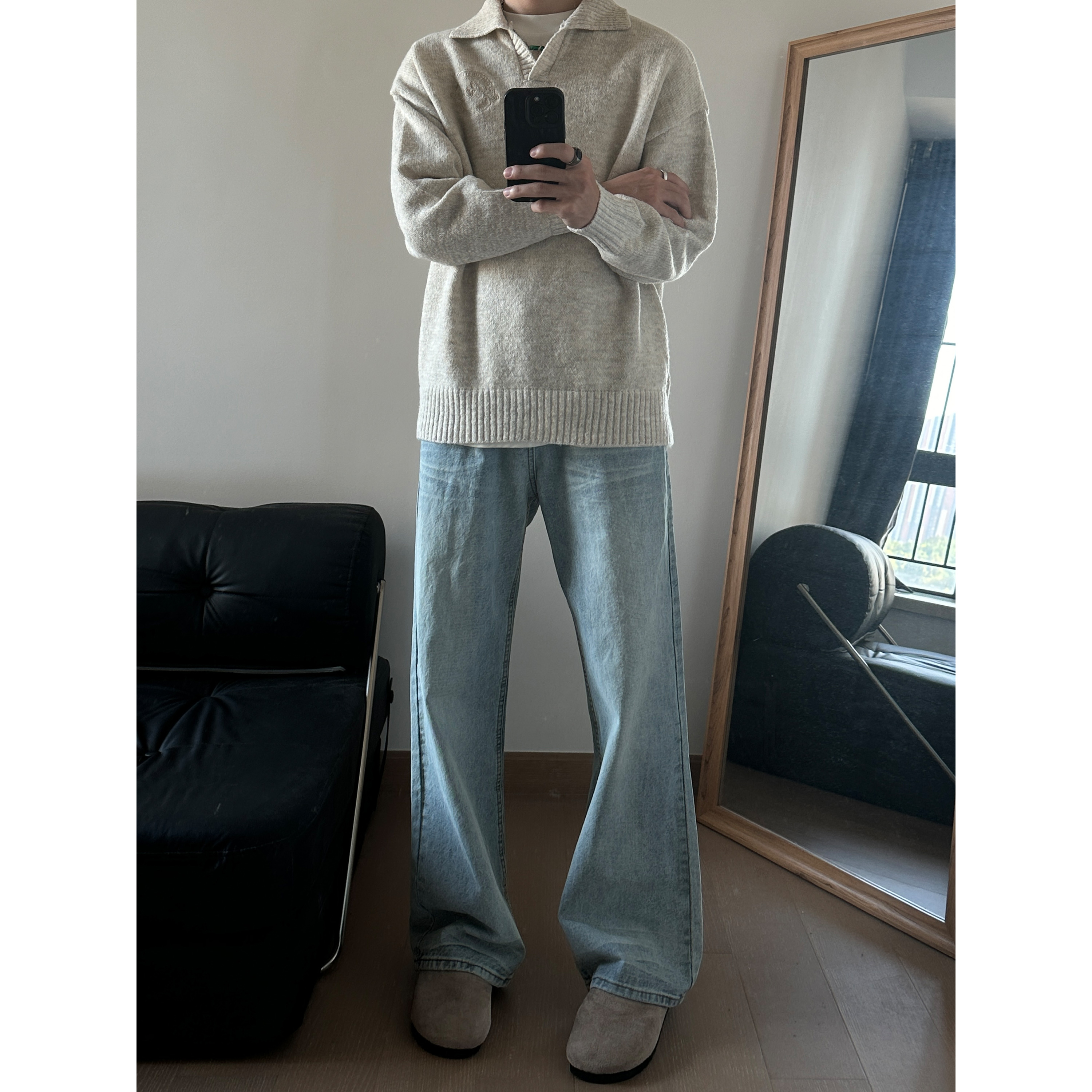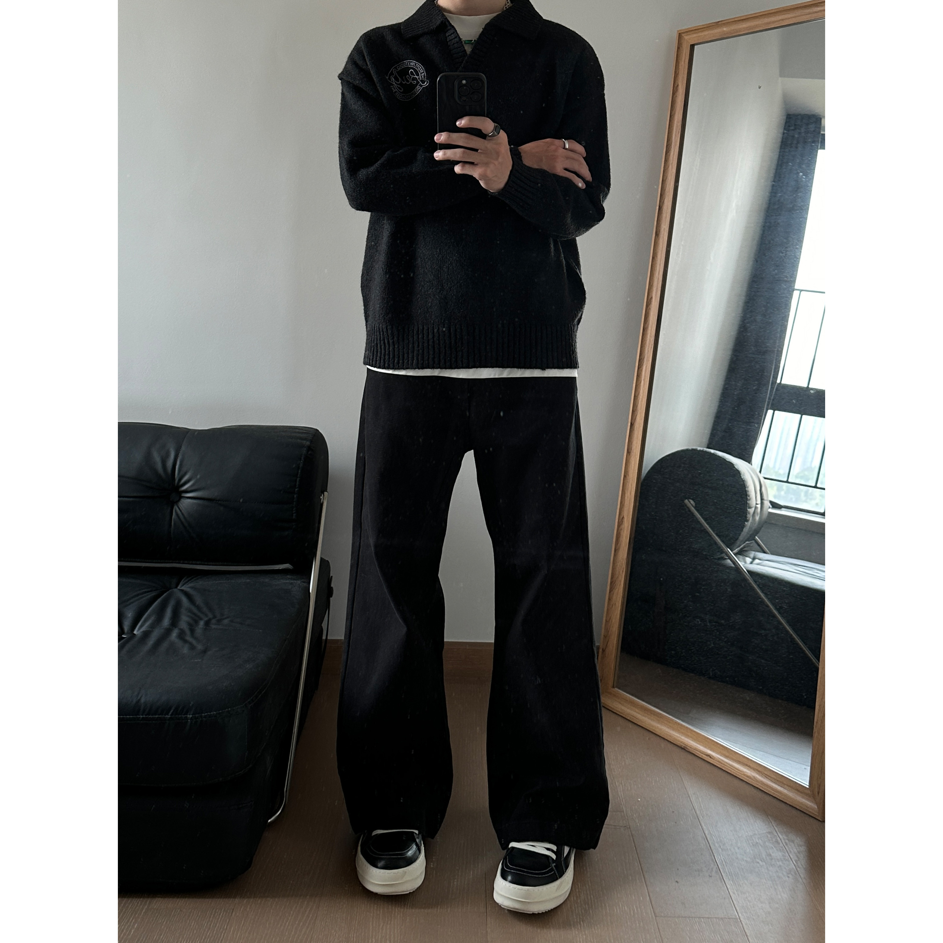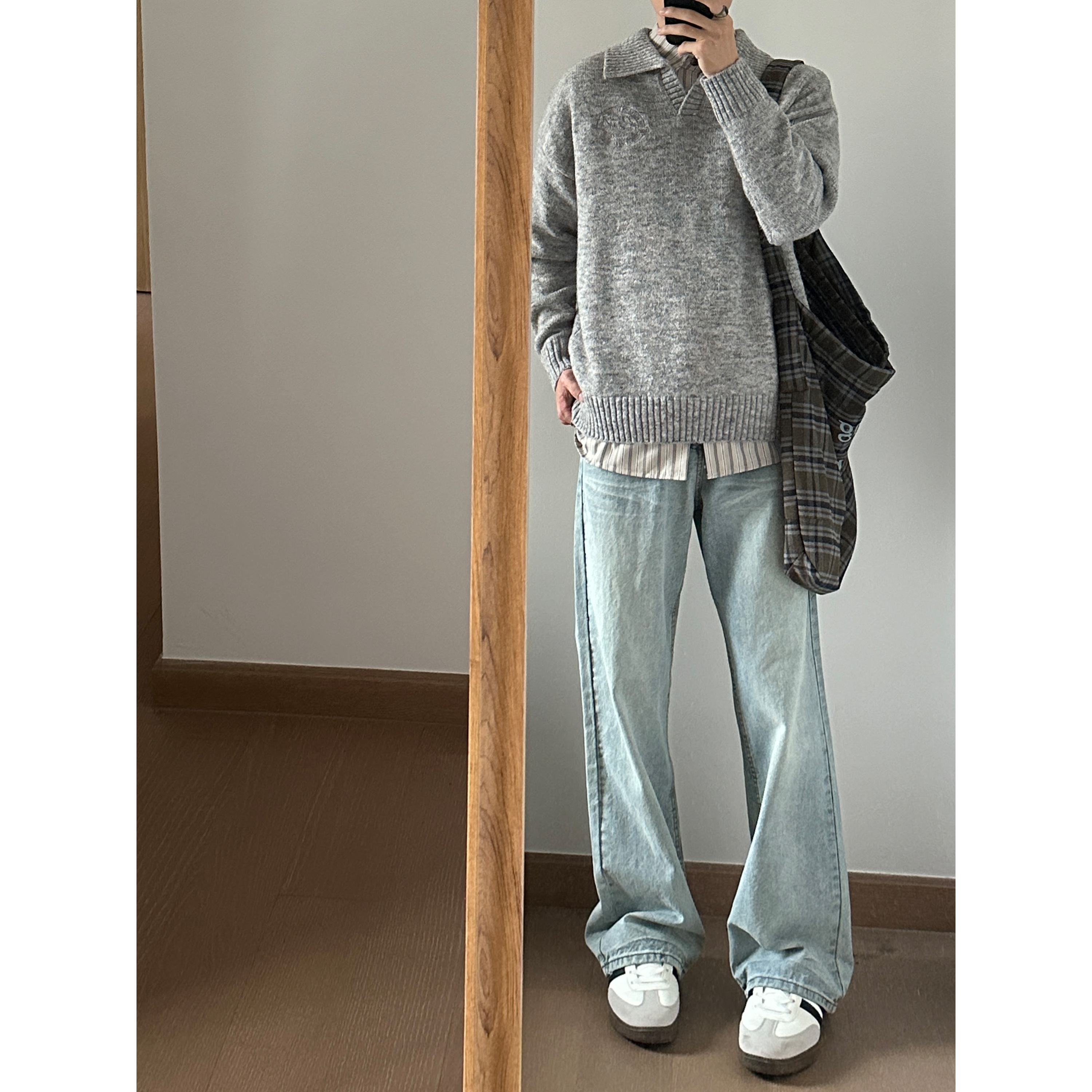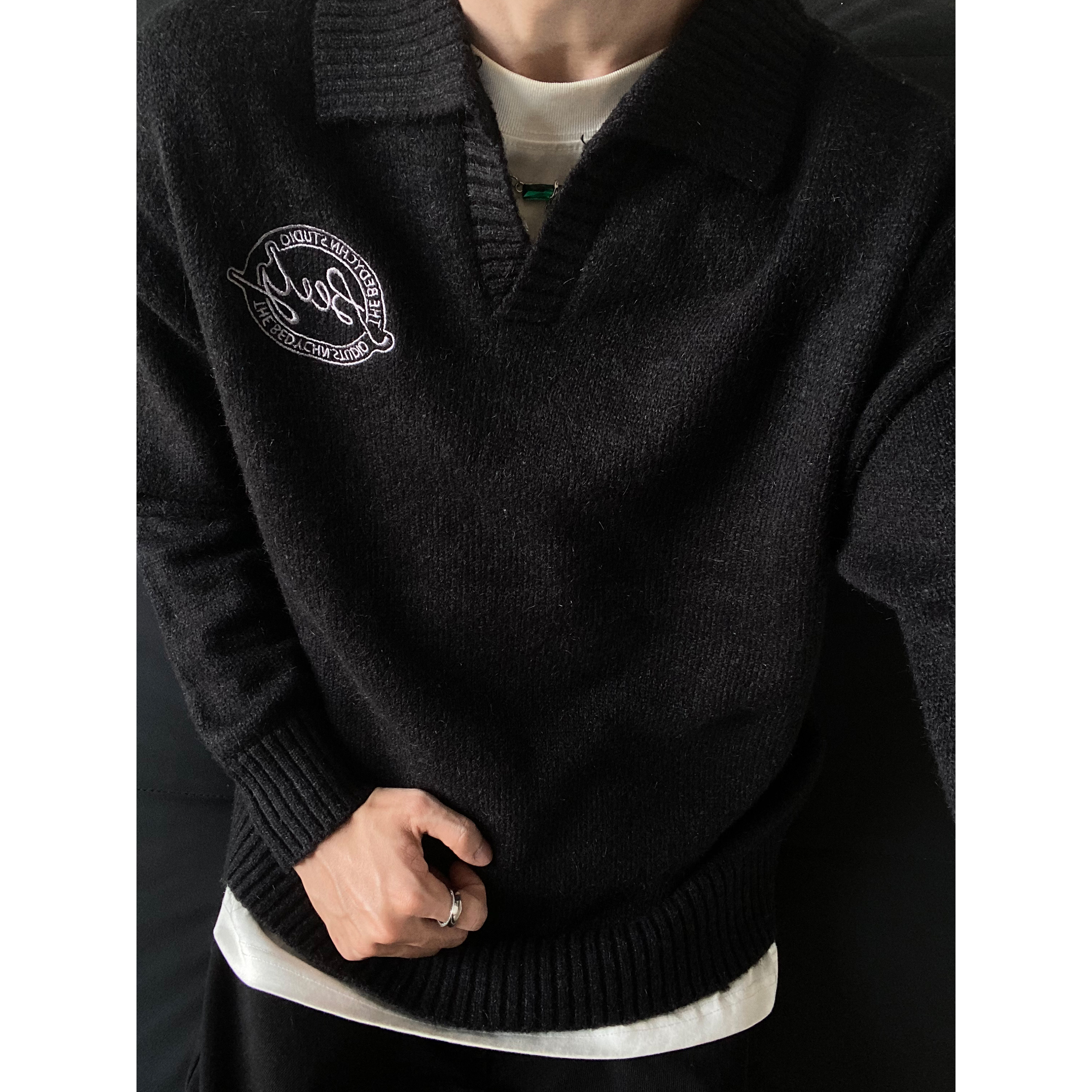 UNLG美式复古polo领针织毛衣男秋冬季翻领宽松休闲简约高级针织衫