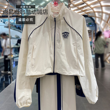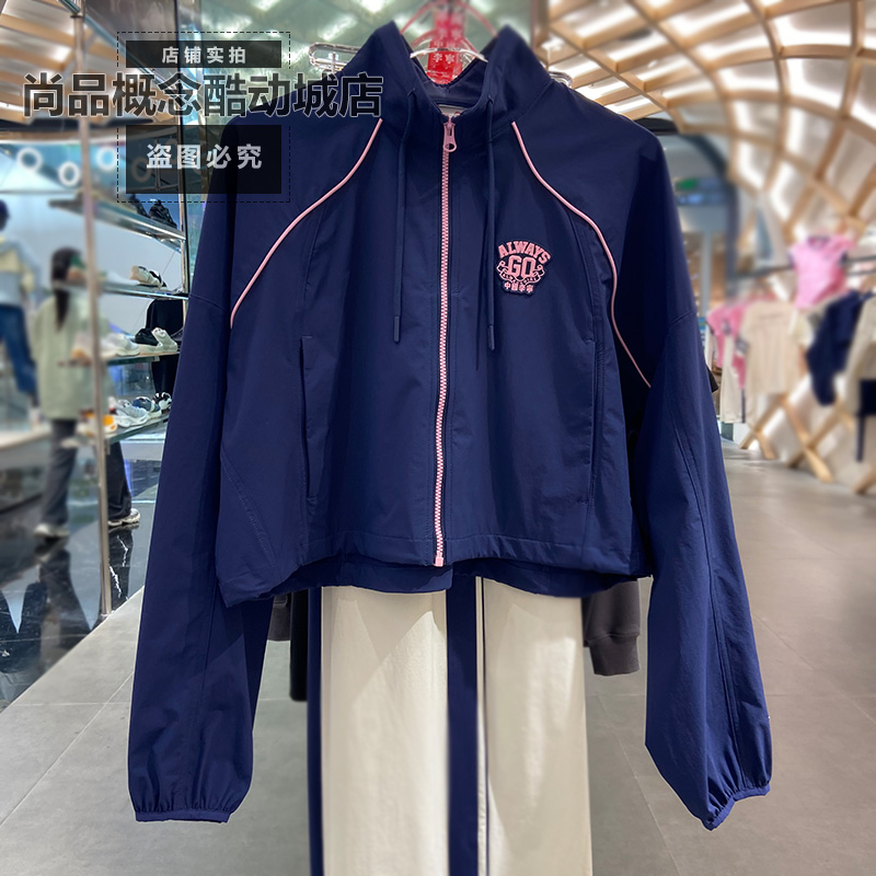 中国李宁女子款短款宽松运动休闲舒适立领风衣拉链外套潮 AFDVB60