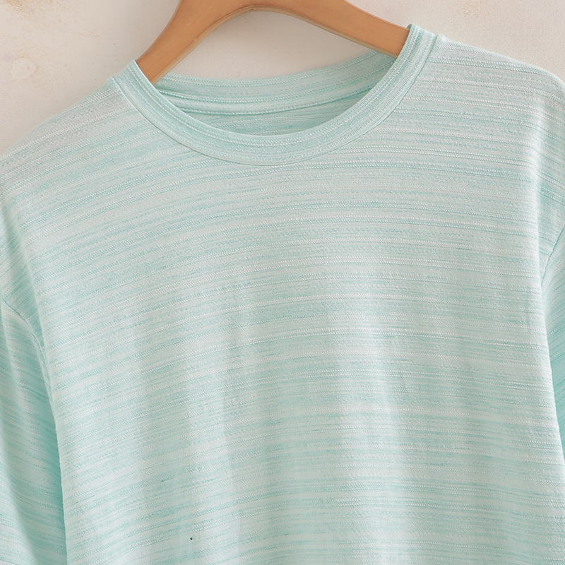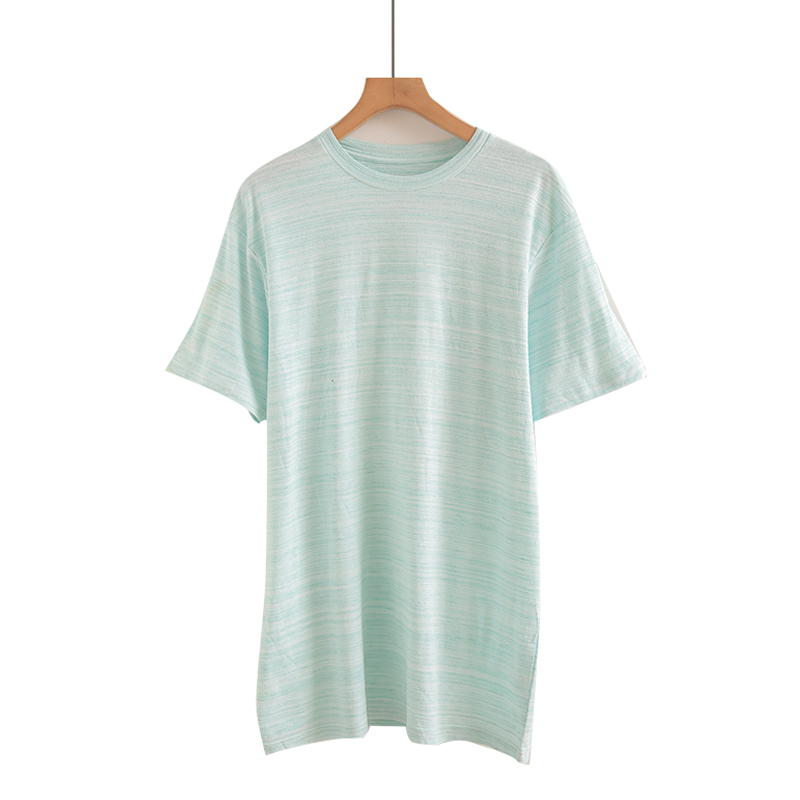 夏季外贸混纺竹节棉吸汗透气短袖体恤宽松中长款T恤情侣百搭上衣