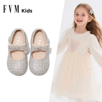 FVM女童鞋子儿童公主皮鞋2025新款春秋亮晶晶女宝女孩高端水晶鞋