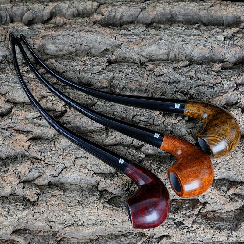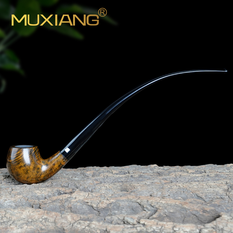 石楠木烟斗手工实木长柄阅读斗弯柄老式传统弯式男士过滤专用烟具