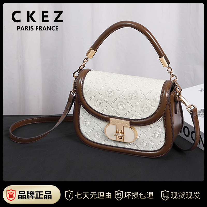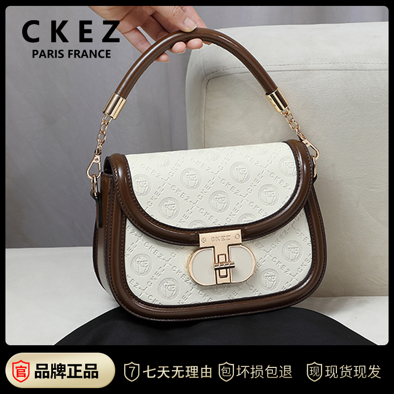 CKEZ正品小众轻奢撞色手提包包女2025新款小方包高级感单肩斜挎包
