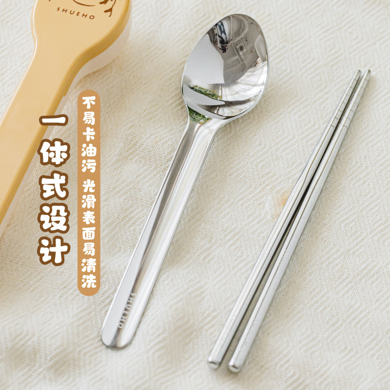 树可胖橘便携式筷子勺子套装儿童不锈钢外出筷勺上学小学生餐具盒