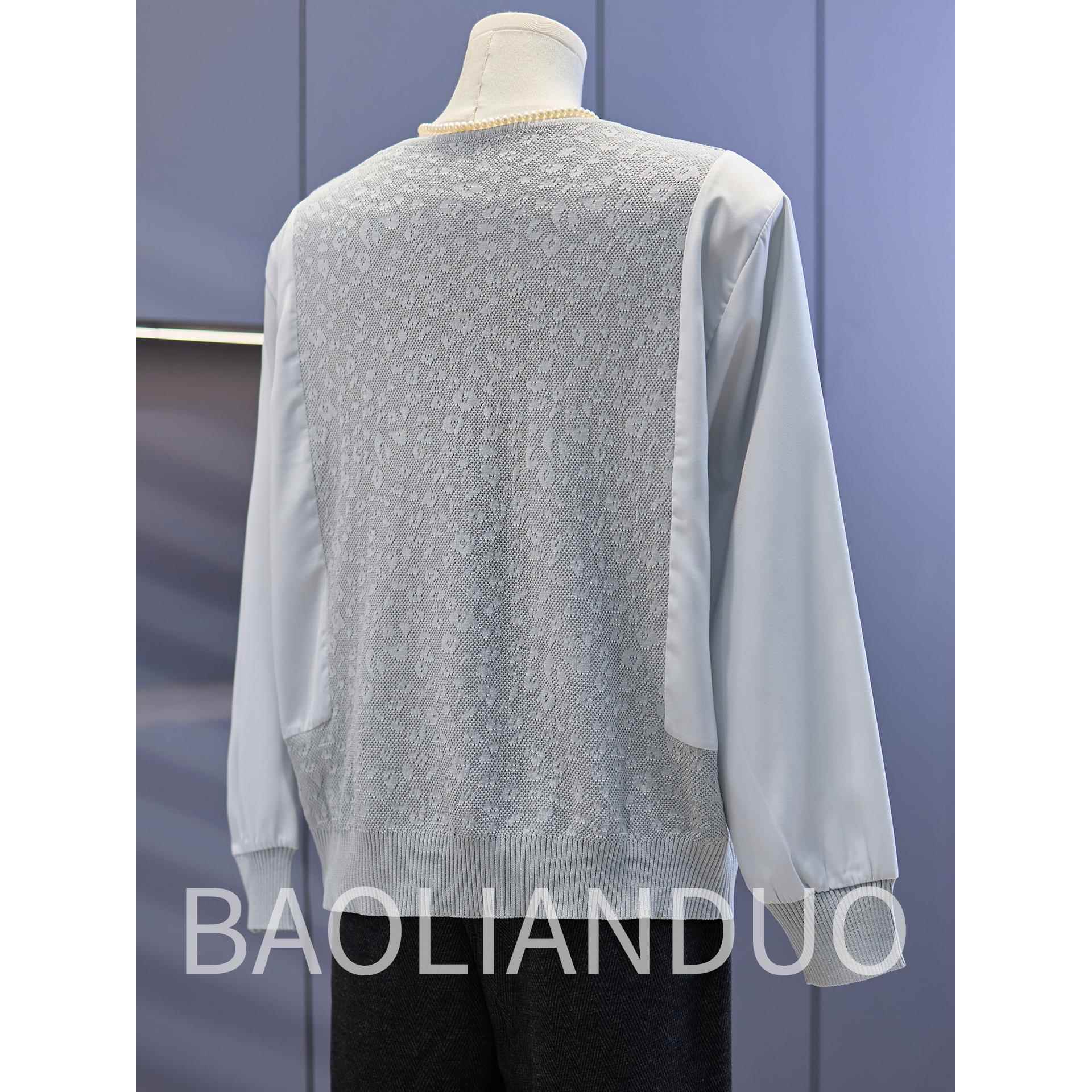 洋气妈妈秋装纱袖T恤中年女装新款上衣服中老年春秋拼接针织小衫