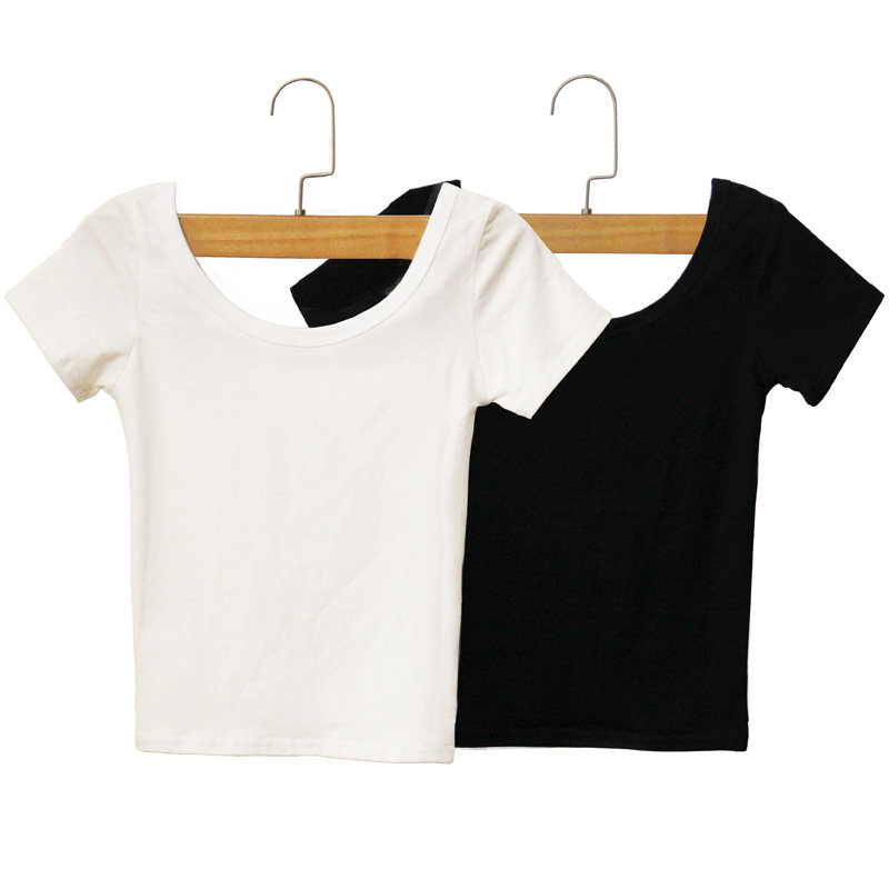 大领口女童紧身短袖T恤纯棉男童打底衫 儿童宝宝黑白低领跳舞体恤