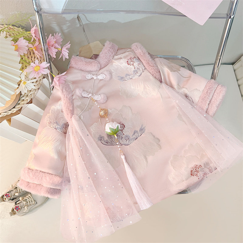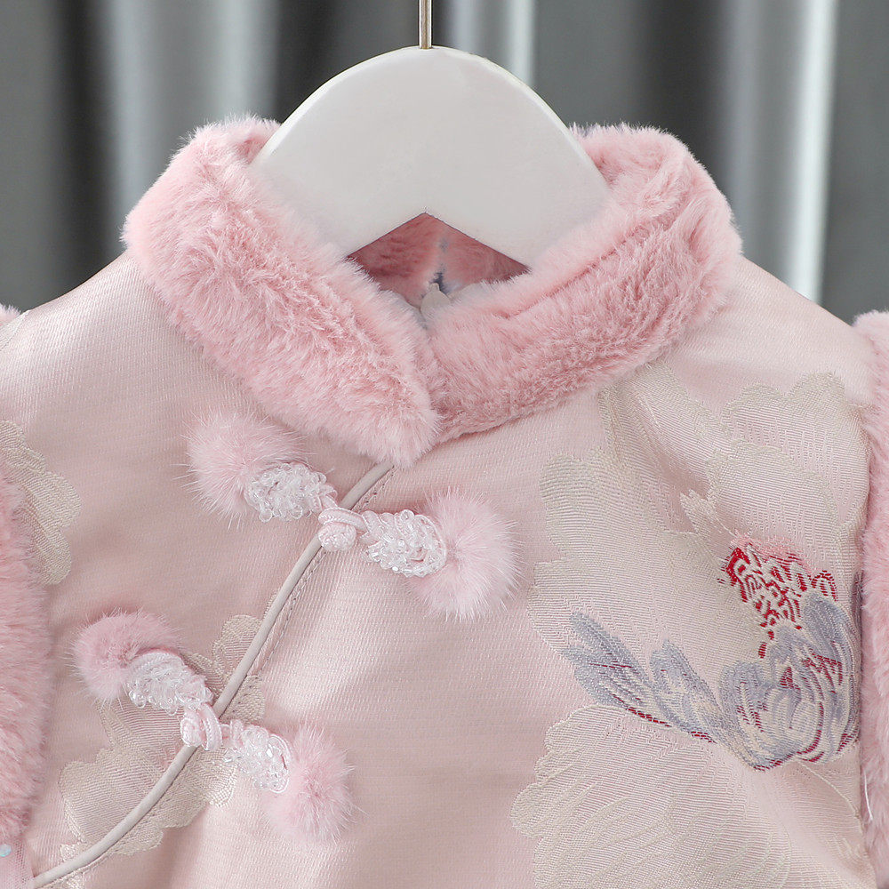 拜年服女童旗袍加绒连衣裙冬季婴儿周岁礼服女宝过年新年衣服唐装