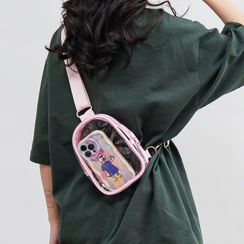 夏天高级感小包包女2026新款宽肩带透明胸包百搭斜挎果冻包手机包