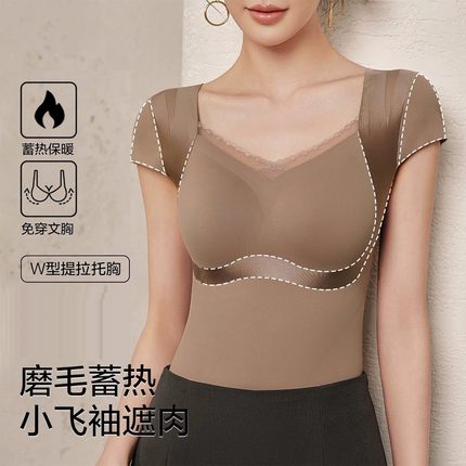 秋冬保暖塑身衣上半身免穿文胸磨毛收腹美体上衣塑形紧身束身衣女