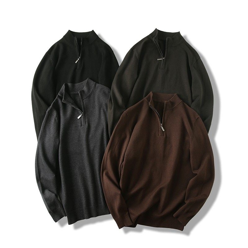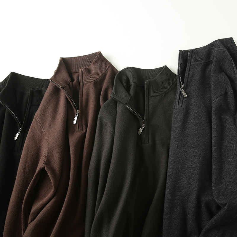 秋冬款莱赛尔半拉链立领针织衫男